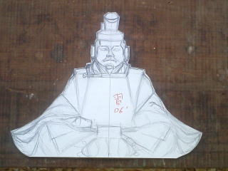 1 木取り 天神像は主にケヤキ材を使い木目を生かすように、