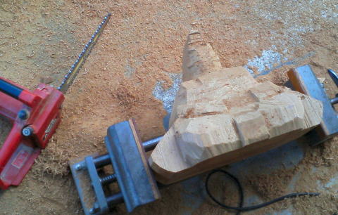 2 荒取り まずチェンソーを使い大まかに削ります。